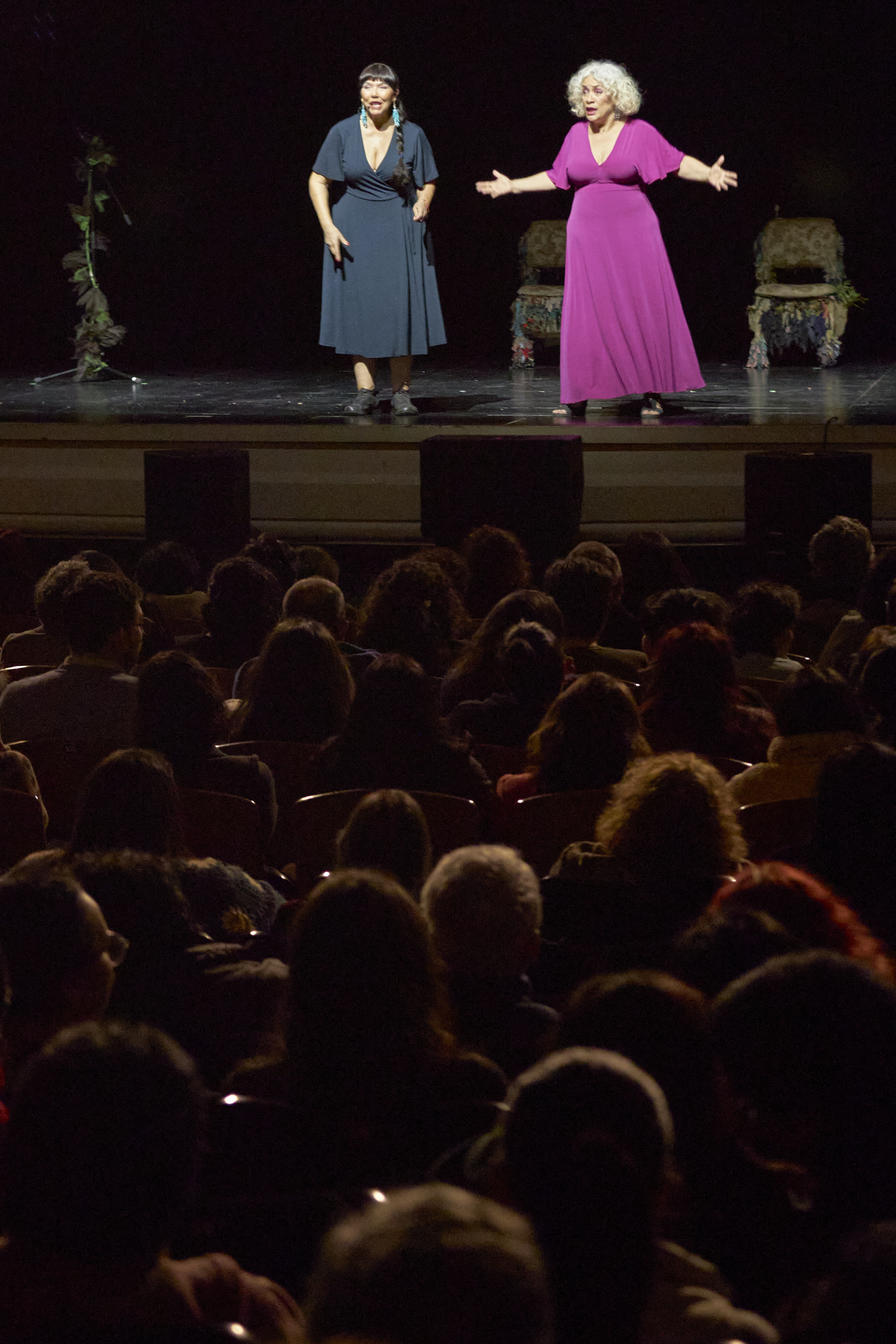 La obra, protagonizada por Malucha Pinto y Carmen Prieto llegaron con un emotivo montaje que mezcla teatro y canto en torno a la música del cantautor cubano Silvio Rodríguez.