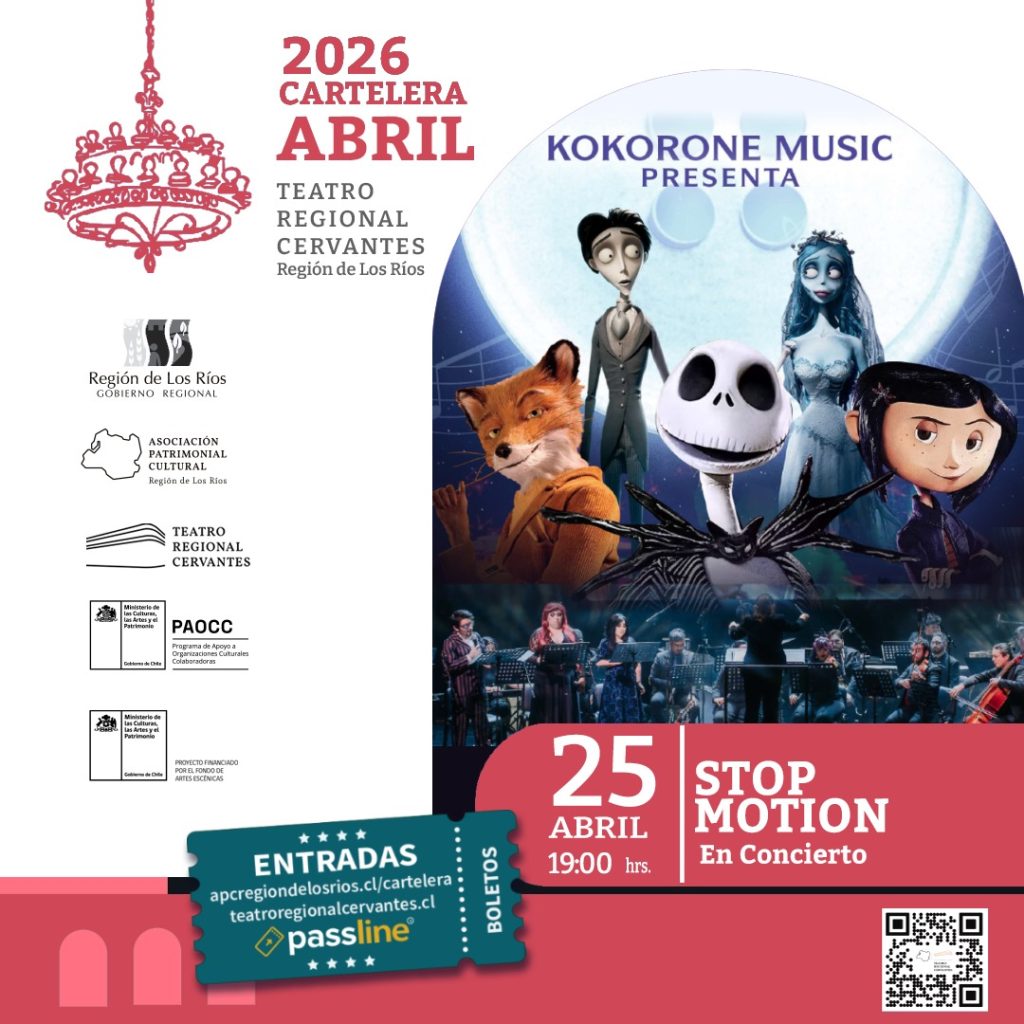 Un concierto único en Chile y Latinoamérica que revive la música de cuatro películas icónicas de la técnica de Stop Motion. “El Fantástico Sr. Zorro», «Coraline», «El Extraño Mundo de Jack» y «El Cadáver de la Novia». Con una orquesta de 22 músicos, cantantes solistas y una directora que darán vida a estas partituras, acompañadas de impactantes imágenes visuales que potencian la atmósfera del espectáculo.