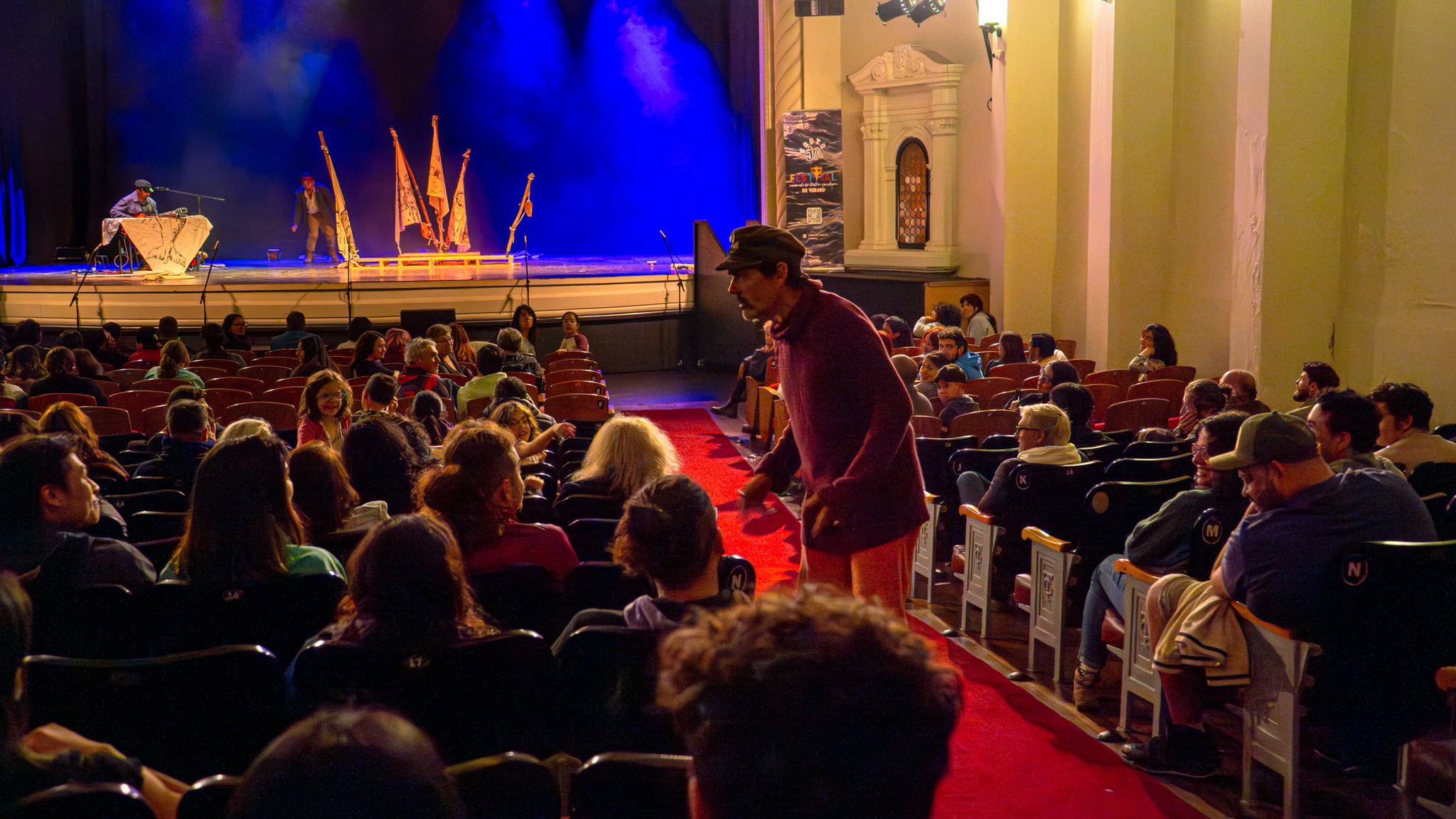 En el Teatro Regional Cervantes se llevó a cabo el cierre de la tercera versión del Festival Nacional de Teatro Familiar de Verano de la Región de los Ríos FesteJA con la obra Mocha Dick de Teatro Búfalo. Un espectáculo con música en vivo que narra la historia del quinceañero Caleb Hienam, nativo de Nantucket (Massachusetts), cuya vida se cruza con la del joven mapuche Aliro Leftraru.